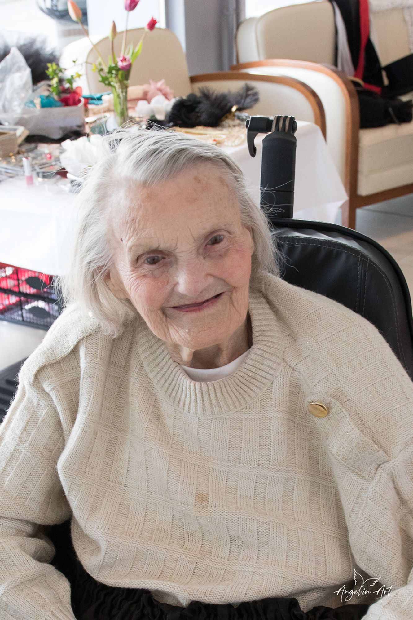 En l 'espace d'une dizaine de minutes, la magie opère,et nos Ainés entrent dans le jeu avec une facilité déconcertante, mis en confiance par la photographe qui les guident pas à pas.