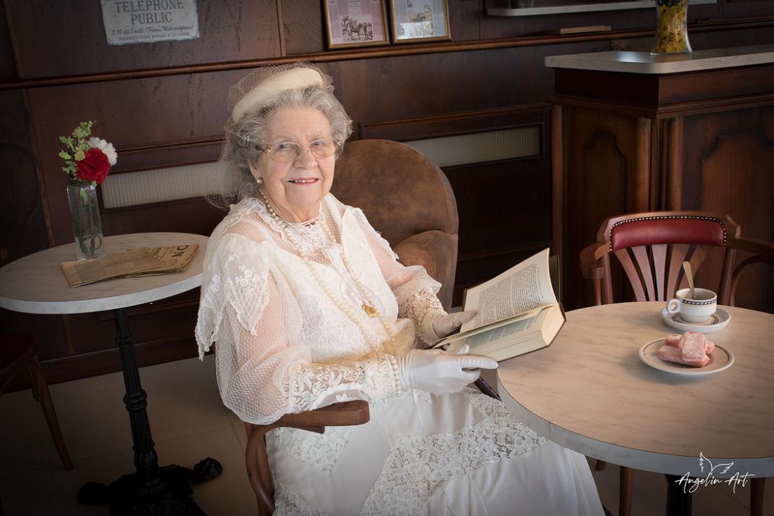 En l 'espace d'une dizaine de minutes, la magie opère,et nos Ainés entrent dans le jeu avec une facilité déconcertante, mis en confiance par la photographe qui les guident pas à pas.